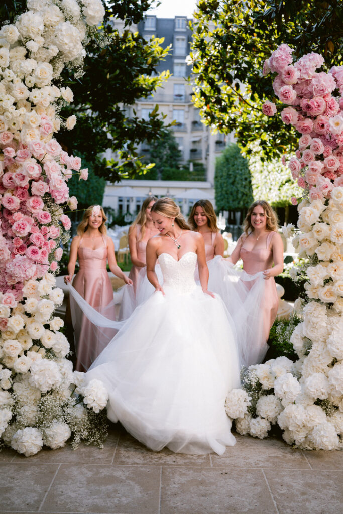 For Matilda, that dream had been alive for years. She wanted a princess wedding, infused with glamour, softness, and the refined atmosphere that defines the Ritz. When she and Alexandre chose to celebrate their union at this iconic Parisian hotel, she already envisioned a floral universe filled with white and pink blooms, delicate textures, and an overall sense of enchanting luxury.