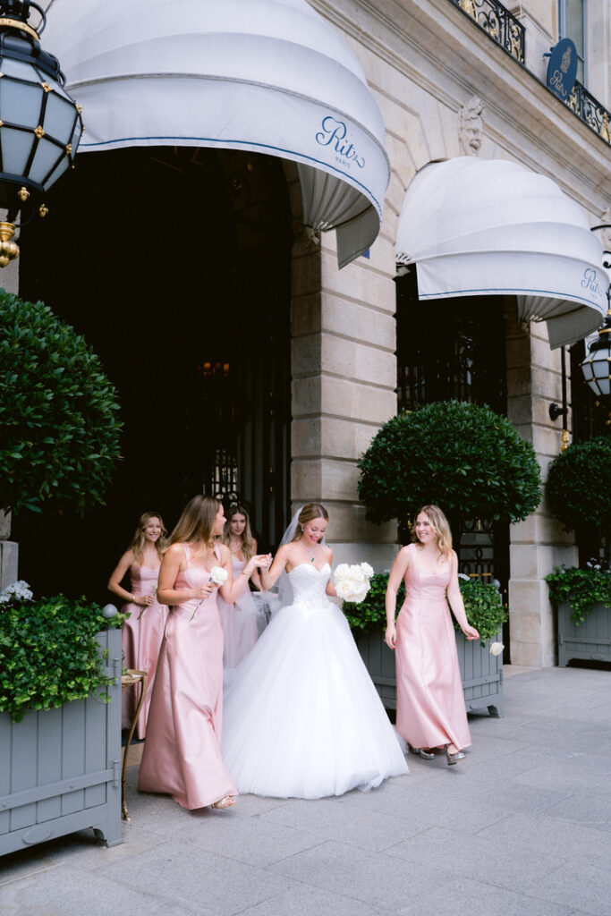 The photographer, Audrey Neracoulis, captured the intimate details of the floral design with sensitivity. Her way of working with natural light highlighted the pastel palette. She also captured the emotional depth of the cathedral ceremony and the glamour of the Ritz reception.